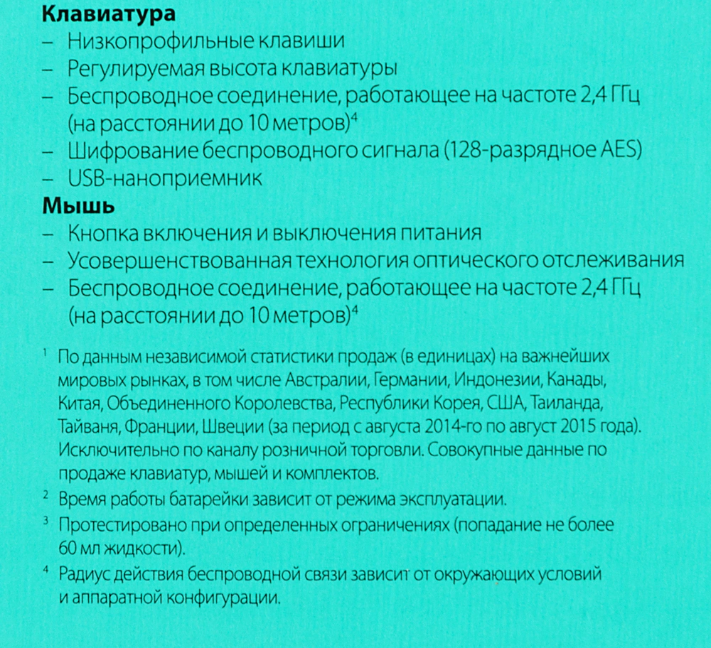 Комплект из беспроводной Slim-клавиатуры и беспроводной оптической мыши.
