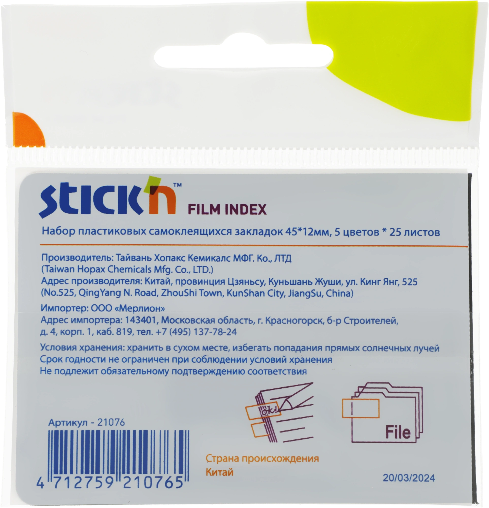 Индексы Hopax 21076 (пластик, 12x45мм, 5цветов, 25закладок каждого цвета)