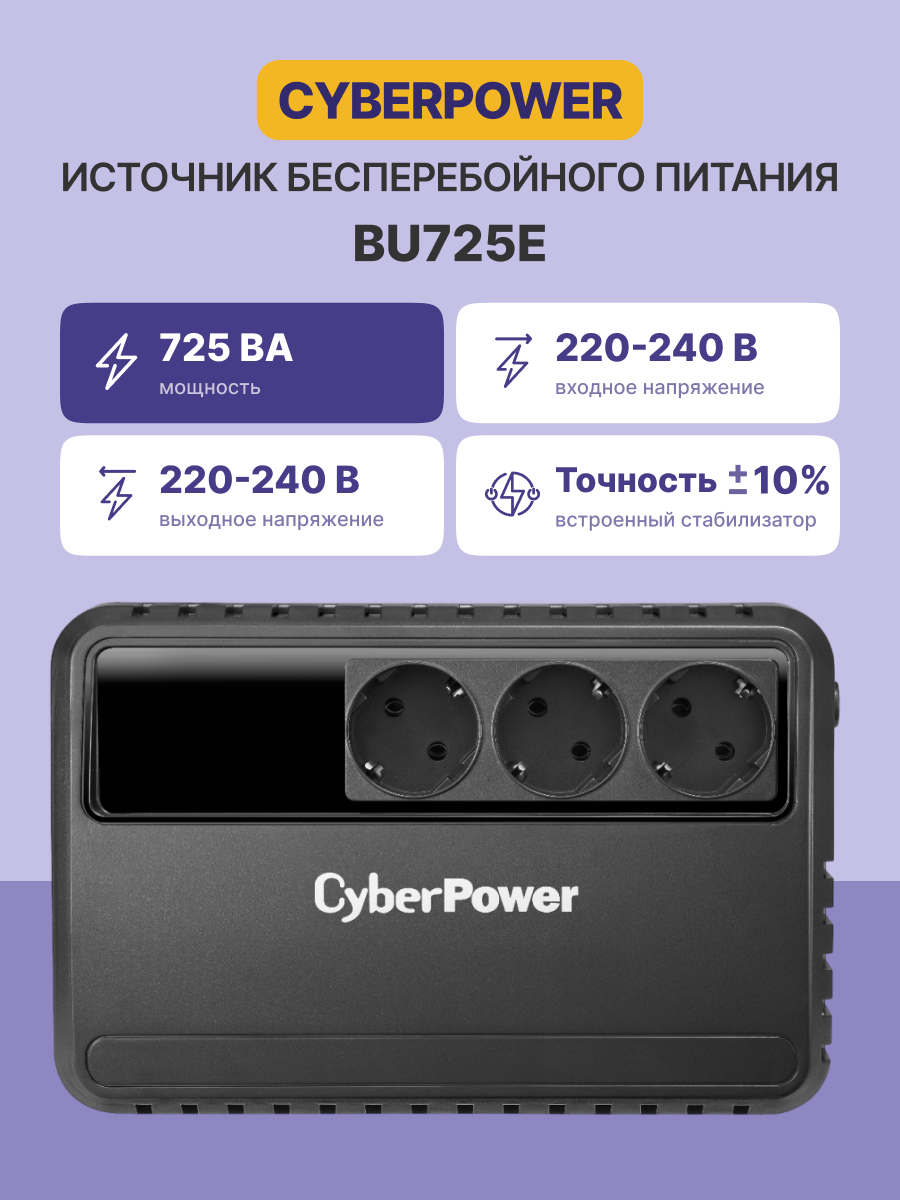 ИБП CyberPower BU-725E (Line-Interactive, 725ВА, 390Вт, 3xCEE 7 (евророзетка))