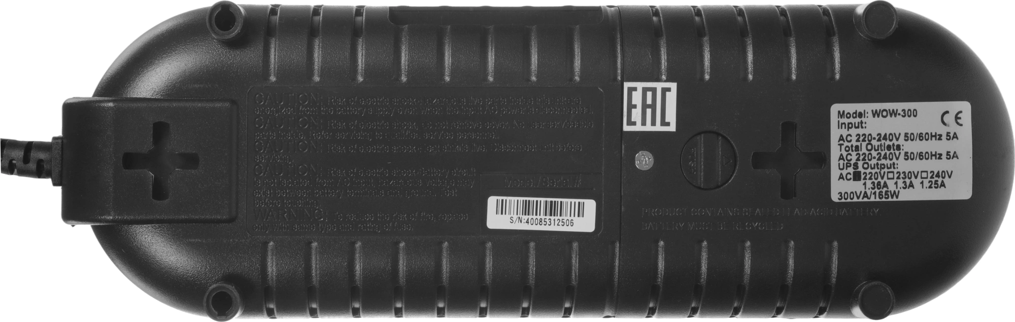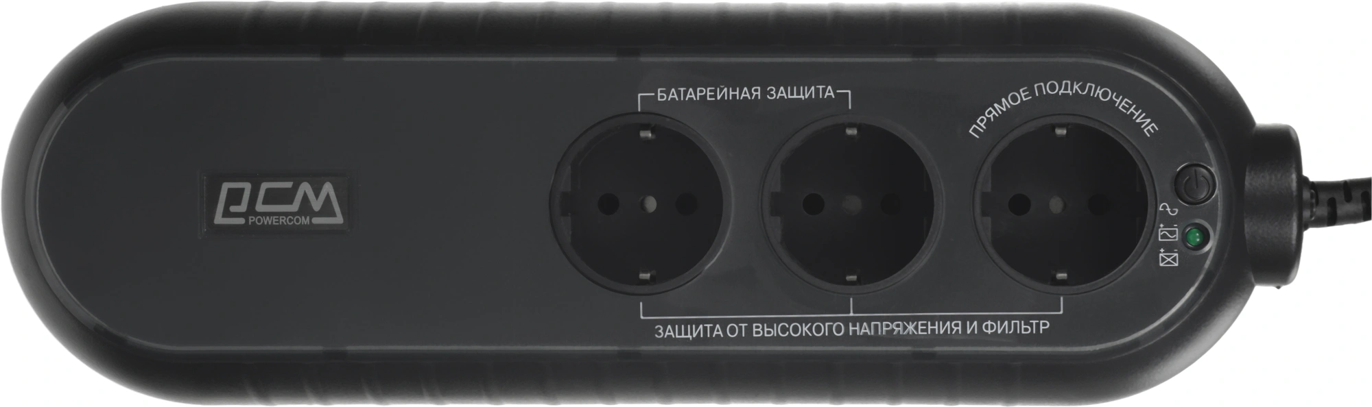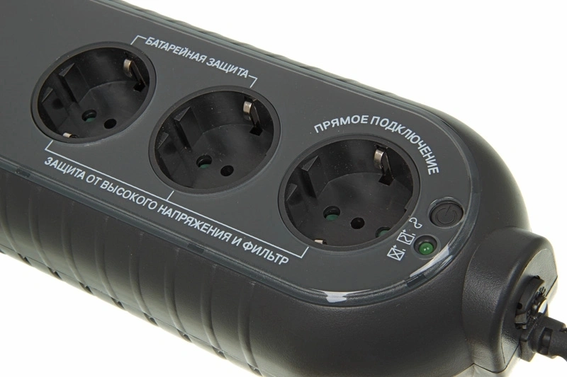 | Особенности | Выходные разъемы: 3хEURO: 2 с резервным питанием, 1 с фильтрацией; Защита ИБП от перегрузок: В режиме работы от электросети если перегрузка превышает 120% от номинала, издается непрерывный звуковой сигнал. Резервный режим: автоматическое отключение ИБП, если перегрузка превышает 110% от номинала за 10 секунд, 130% за 3 секунды; Тип батареи: С горячей заменой, герметичный необслуживаемый свинцово-к |