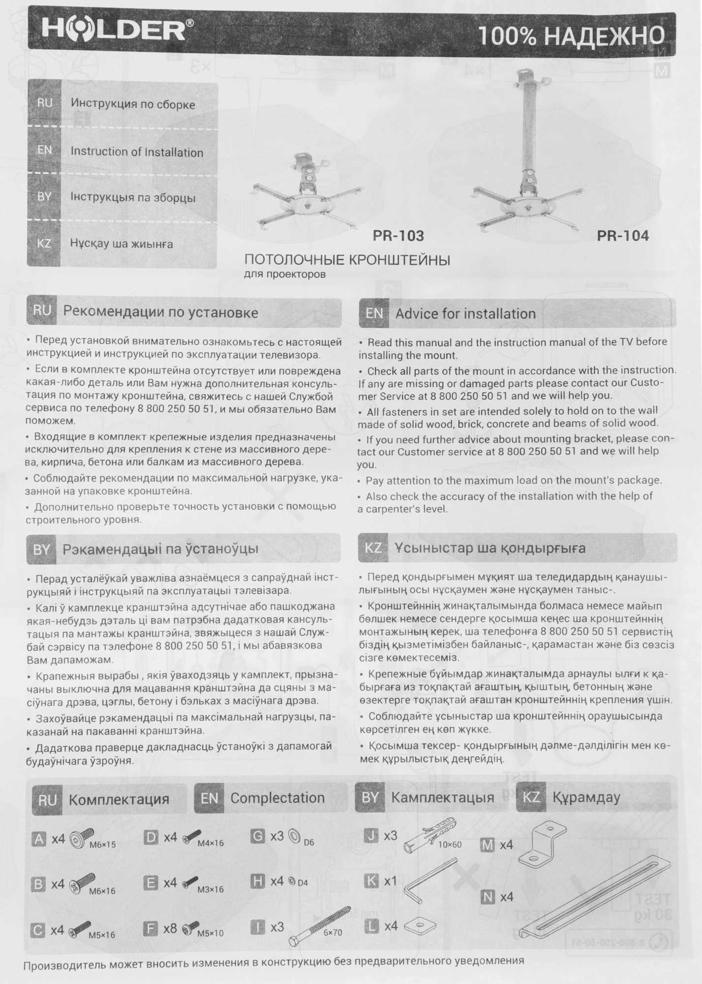 | Максимальный вес оборудования | 20 кг |