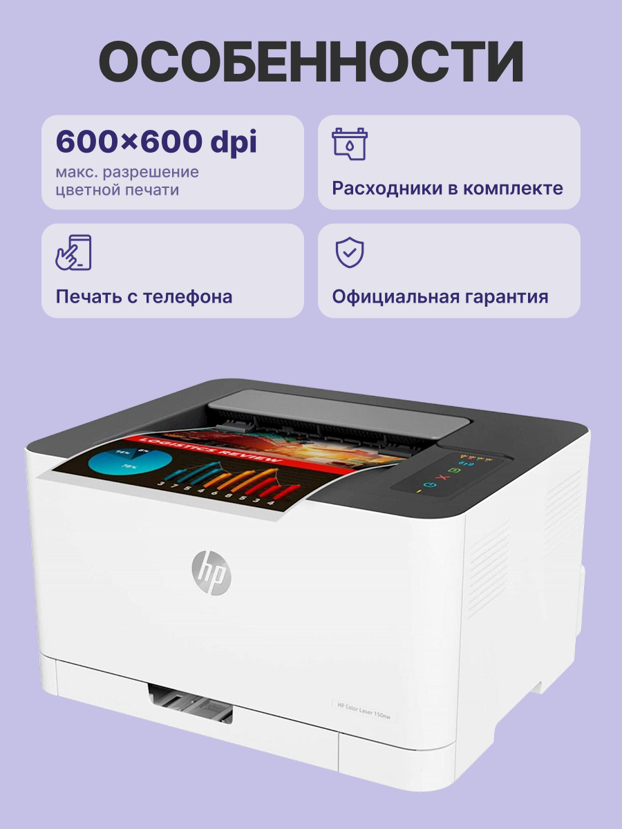 Комплектация | предустановленные пробные лазерные картриджи HP 117A (ресурс черного — 700 страниц, ресурс голубого, желтого, пурпурного — 500 страниц); блок фотобарабана; модуль сбора тонера; инструкции по настройке; справочное руководство; листовка с информацией о технической поддержке; руководство по гаранти |
