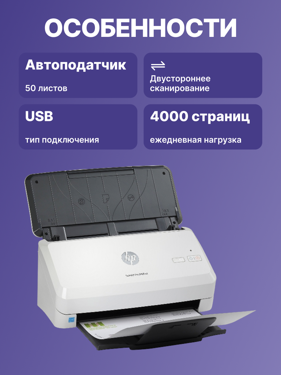 Быстро сканируйте двусторонние документы за один проход — рекомендуемая нагрузка составляет 4000 страниц в день.