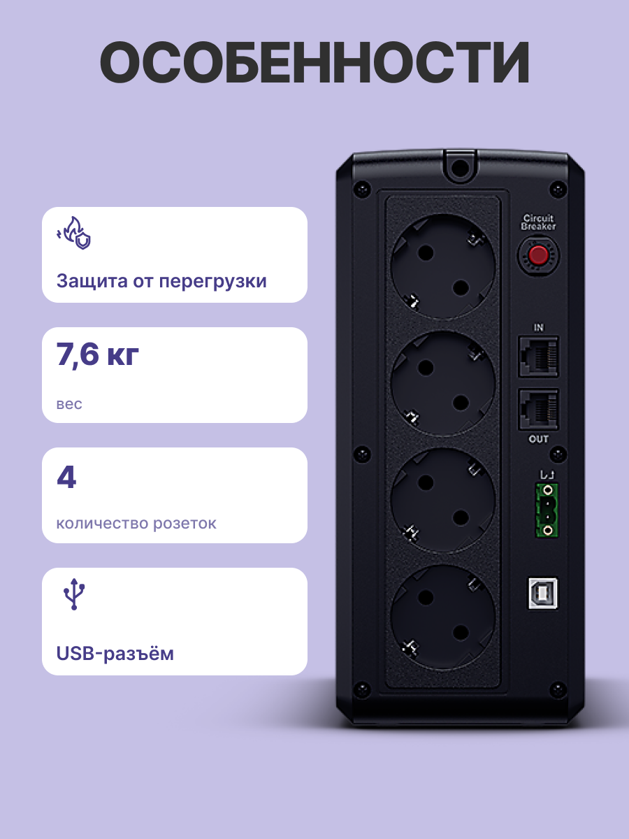 Тип выходных разъемов питания CEE 7 (евророзетка)