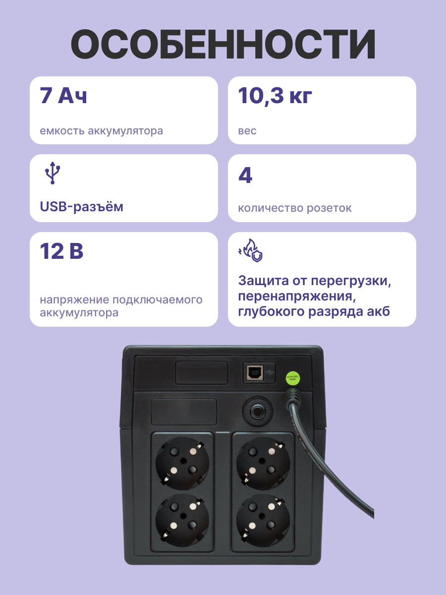 | Количество выходных разъемов питания (UPS) | 4 |