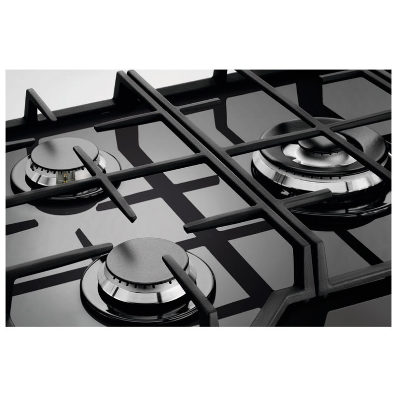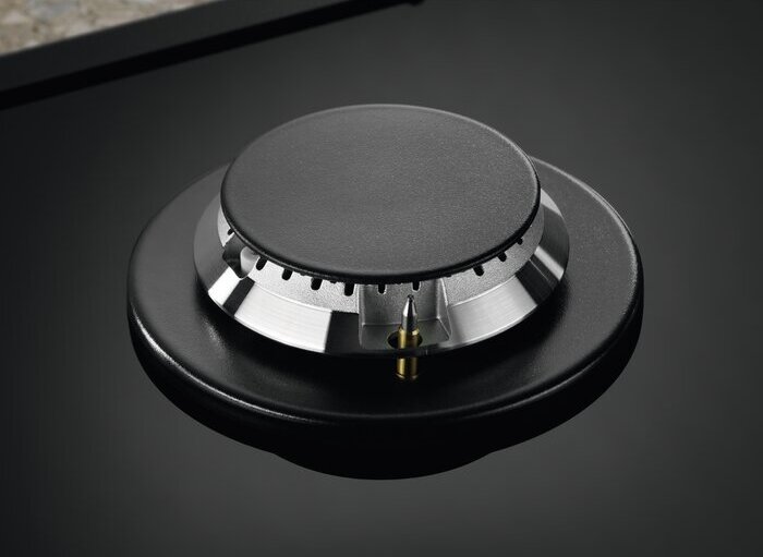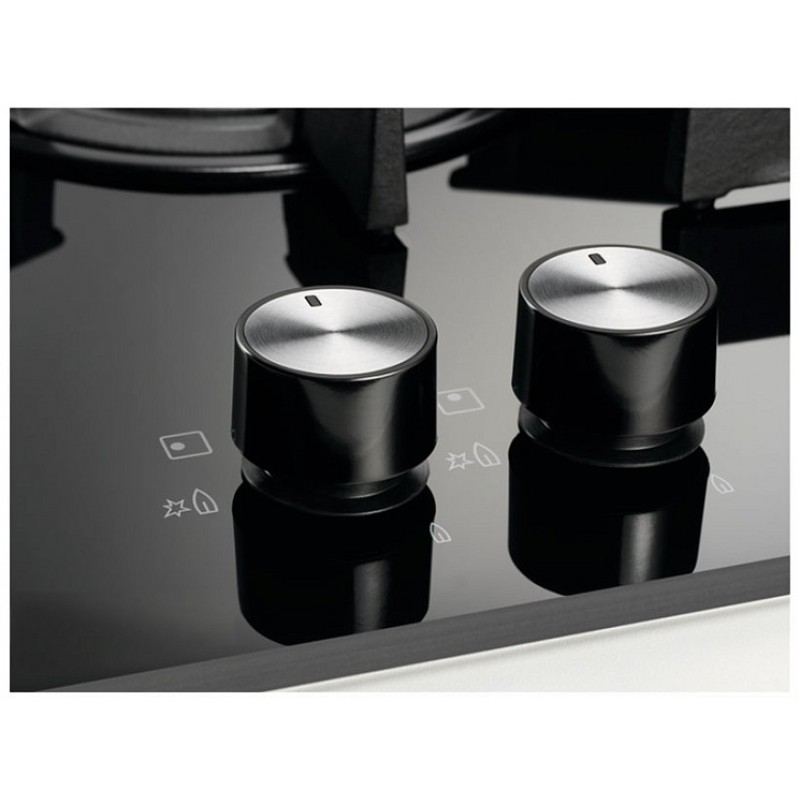 Варочная панель Электролюкс KGG75362K оснащена системой газ-контроля. Эта технология работает благодаря термопаре, которая реагирует на температуру пламени. Если пламя случайно погаснет, термопара начнёт остывать в течение примерно 10 секунд, после чего блокирует подачу топлива. Это предотвращает утечки и другие неприятности. А автоматический электроподжиг позволяет забыть о спичках и зажигалках, делая процесс использования быстрым и удобным. Нужно повернуть и втопить ручки до специальной отметки. Потребитель услышит щелчки, а затем появляется искра, которая и зажигает огонь.