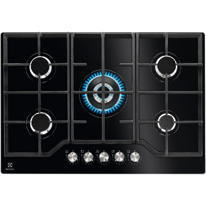 Варочная панель ELECTROLUX KGG75362K относится к газовому типу. В качестве материала поверхности использовали закалённое стекло, которое обеспечивает прочность и долговечность панели. Фурнитура из нержавеющей стали огнеупорна и не боится влажности, которая часто встречается на кухне. Ширина у данной модели нестандартная - 75 см, но при этом на ней разместилось 5 конфорок различной мощности, которые предназначены для разного вида обработки и подходят под разную посуду. Так пользователь может использовать несколько зон нагрева одновременно.