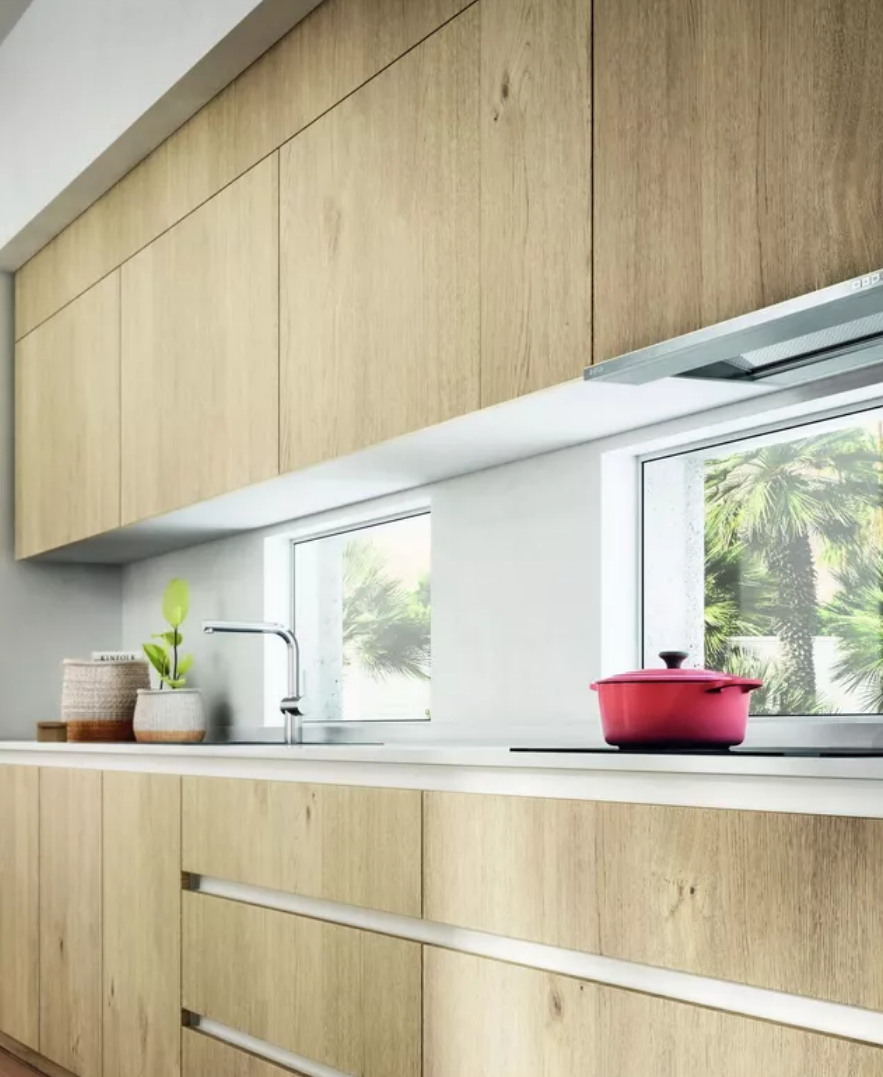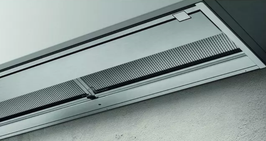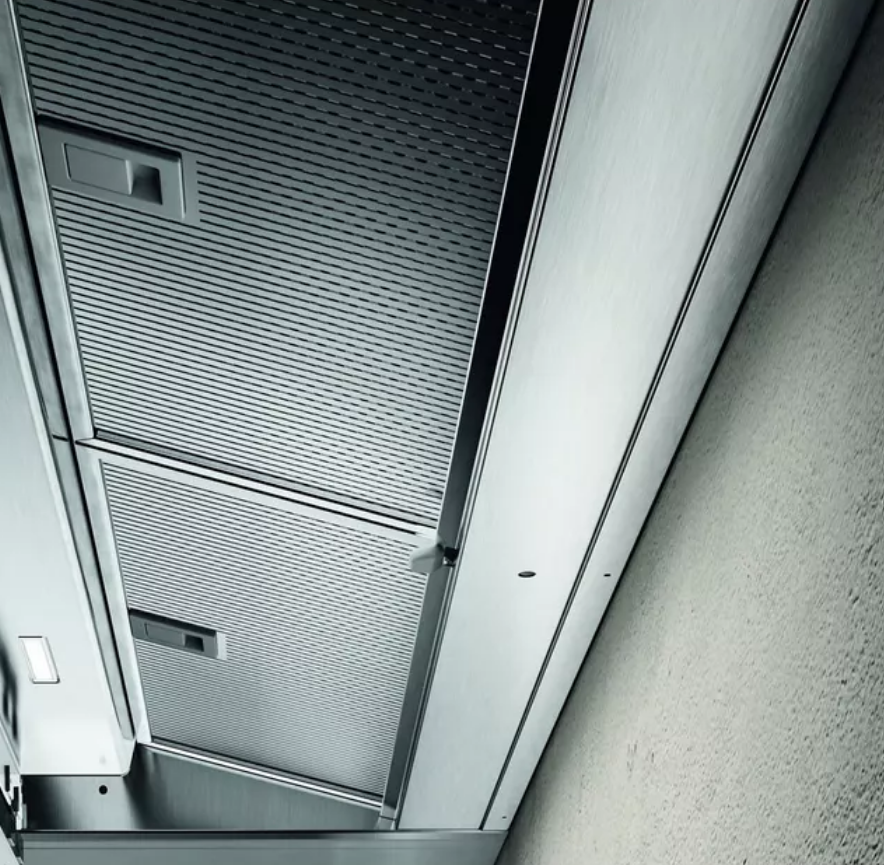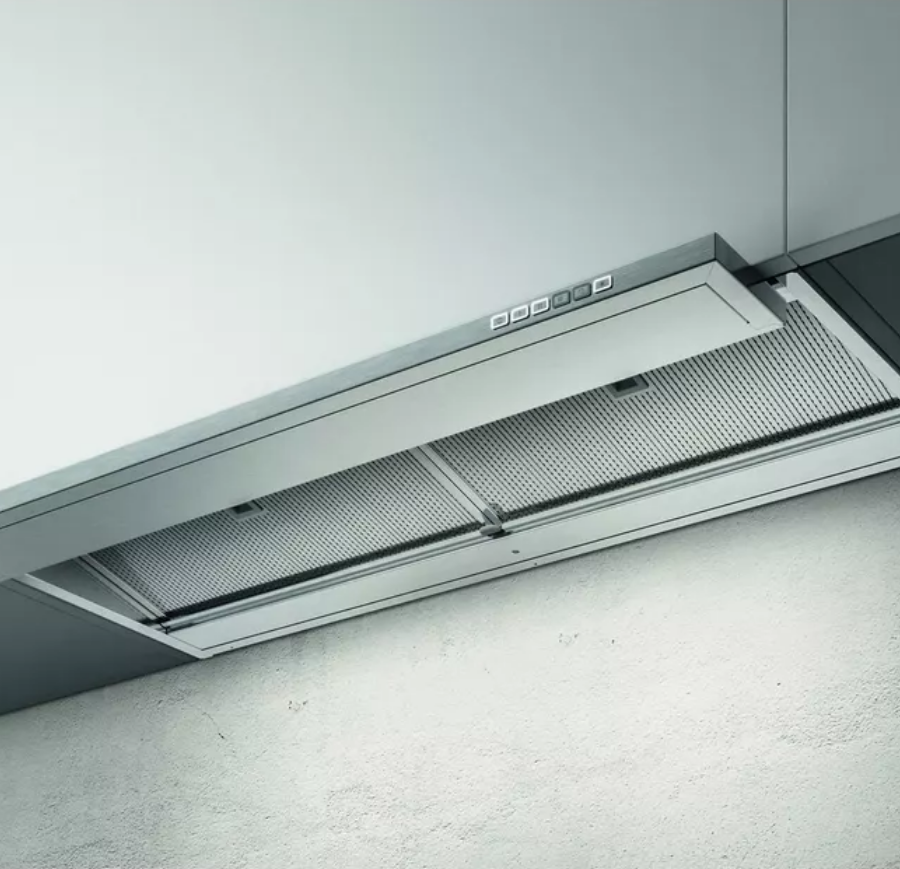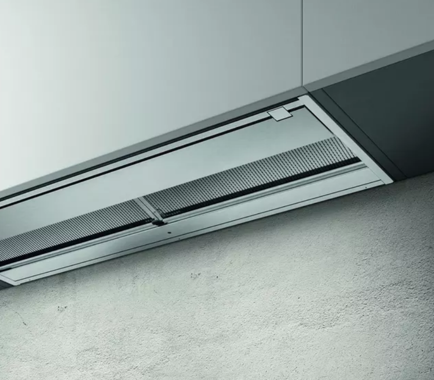 Модель оснащена утапливаемым вращающимся программатором, который управляет тремя скоростями вытяжного вентилятора. Устройство имеет производительность до 1300 куб. м в час. На первой скорости уровень шума составляет всего 67 Дб.