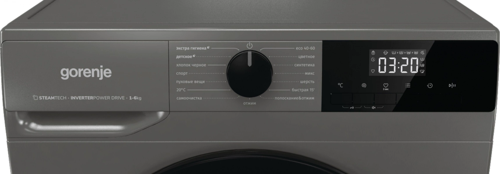 | Специальные программы | Хлопок, синтетика, шерсть, спорт, микс, антиаллергия, детская одежда, суперчерное, Есо 20°С, быстрая 15', пуховые вещи, эко 40–60, отжим, самоочистка SterilTub, полоскание/отжим |