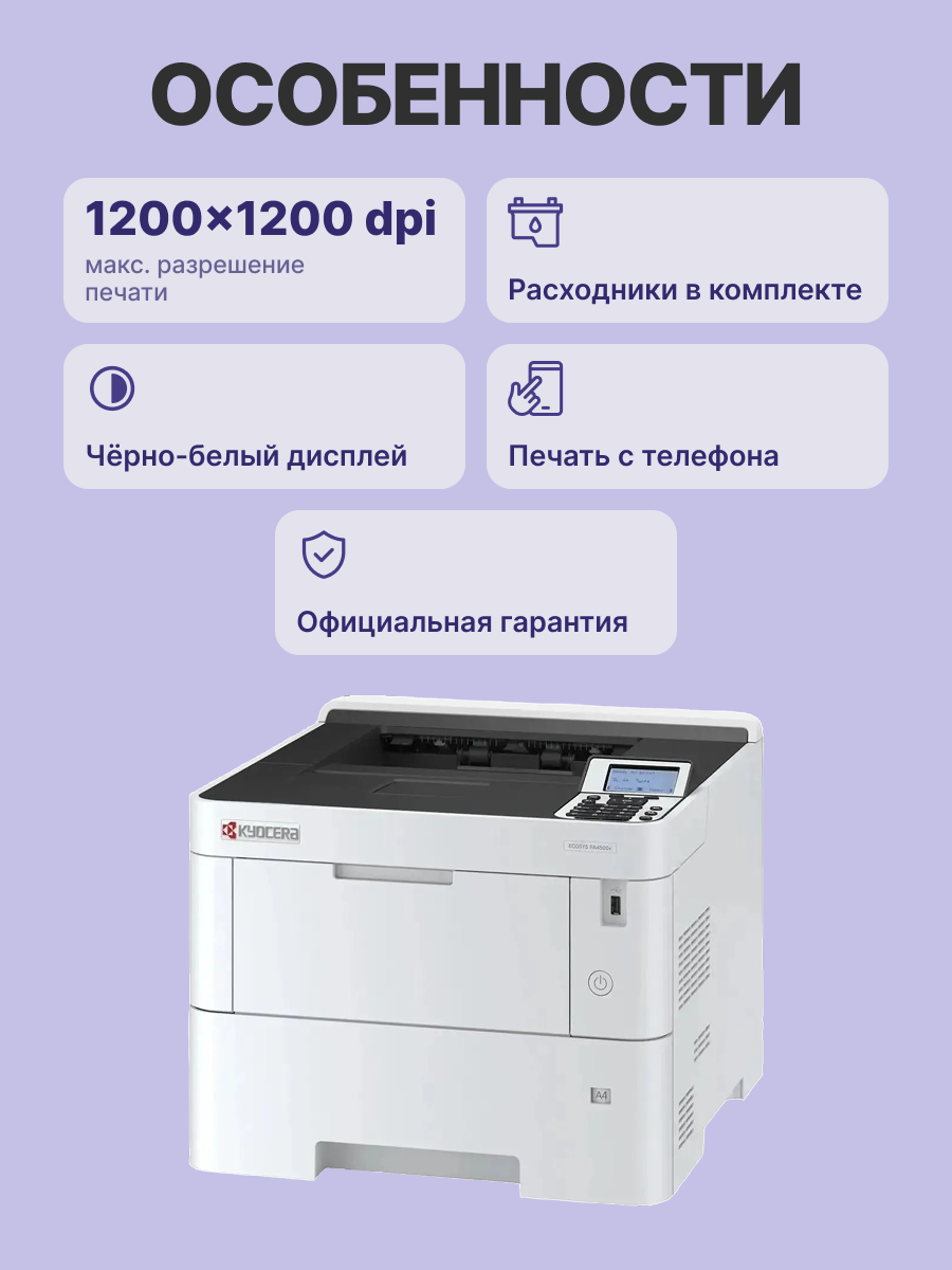 | Максимальное разрешение для ч/б печати | 1200x1200 dpi |