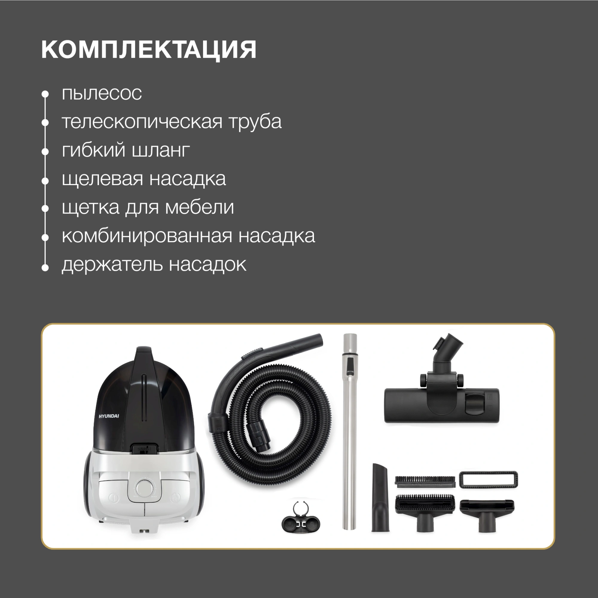 Пылесос Hyundai HYV-C2650 (сухая, контейнер, мощность всасывания: 380Вт, пылесборник: 3.5л, потребляемая мощность: 2200Вт)