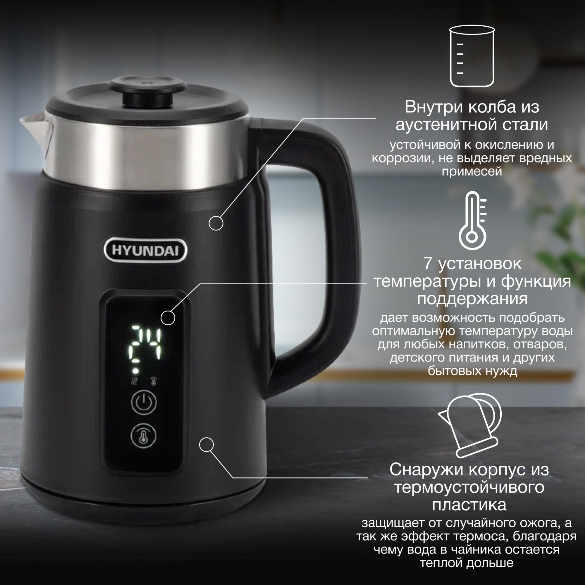 Электрический чайник высокой мощности для быстрого приготовления теплой и горячей воды нужной температуры под разные цели. Это не просто чайник, а современный и качественный инструмент на вашей кухне под разные задачи.