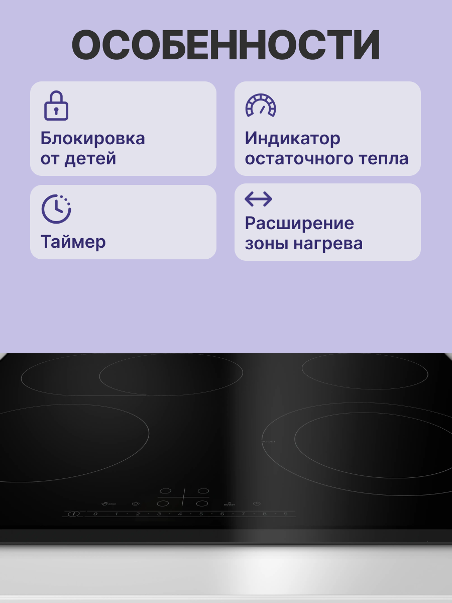 Зона расширения: более широкая зона для использования более широкой посуды, например, жаровни.