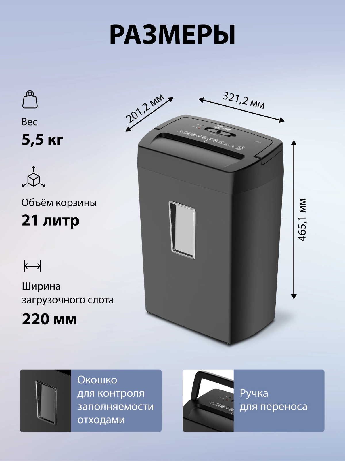 | Емкость корзины | 21 л |