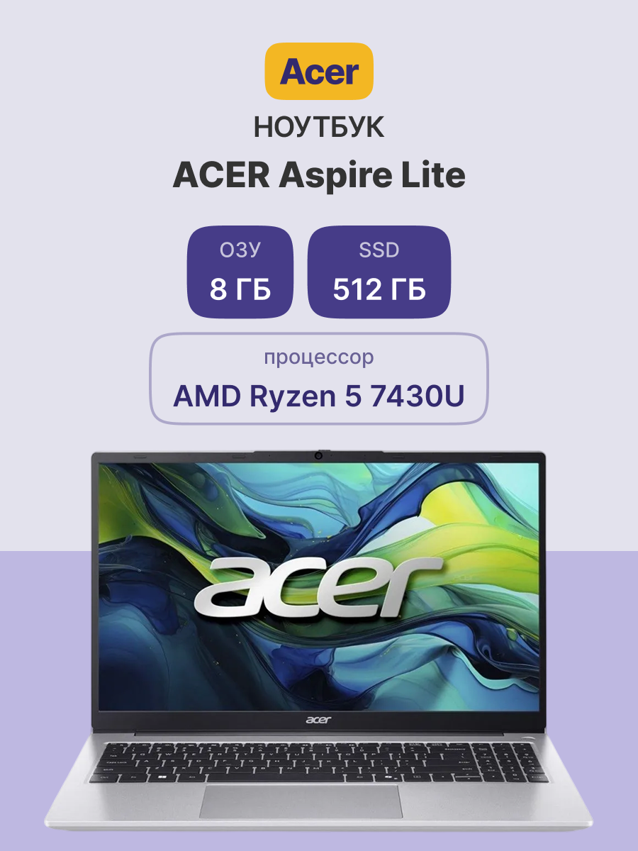 Ноутбук ACER Aspire Lite AL15-42P-R055 - это стильное и производительное устройство, предназначенное для пользователей, которым необходимо надежное решение для работы, учебы и развлечений. С 15.6-дюймовым IPS экраном и разрешением 1920x1080 пикселей, он обеспечивает яркое и четкое изображение, что делает его идеальным для просмотра мультимедийного контента, работы с графикой и выполнения повседневных задач.