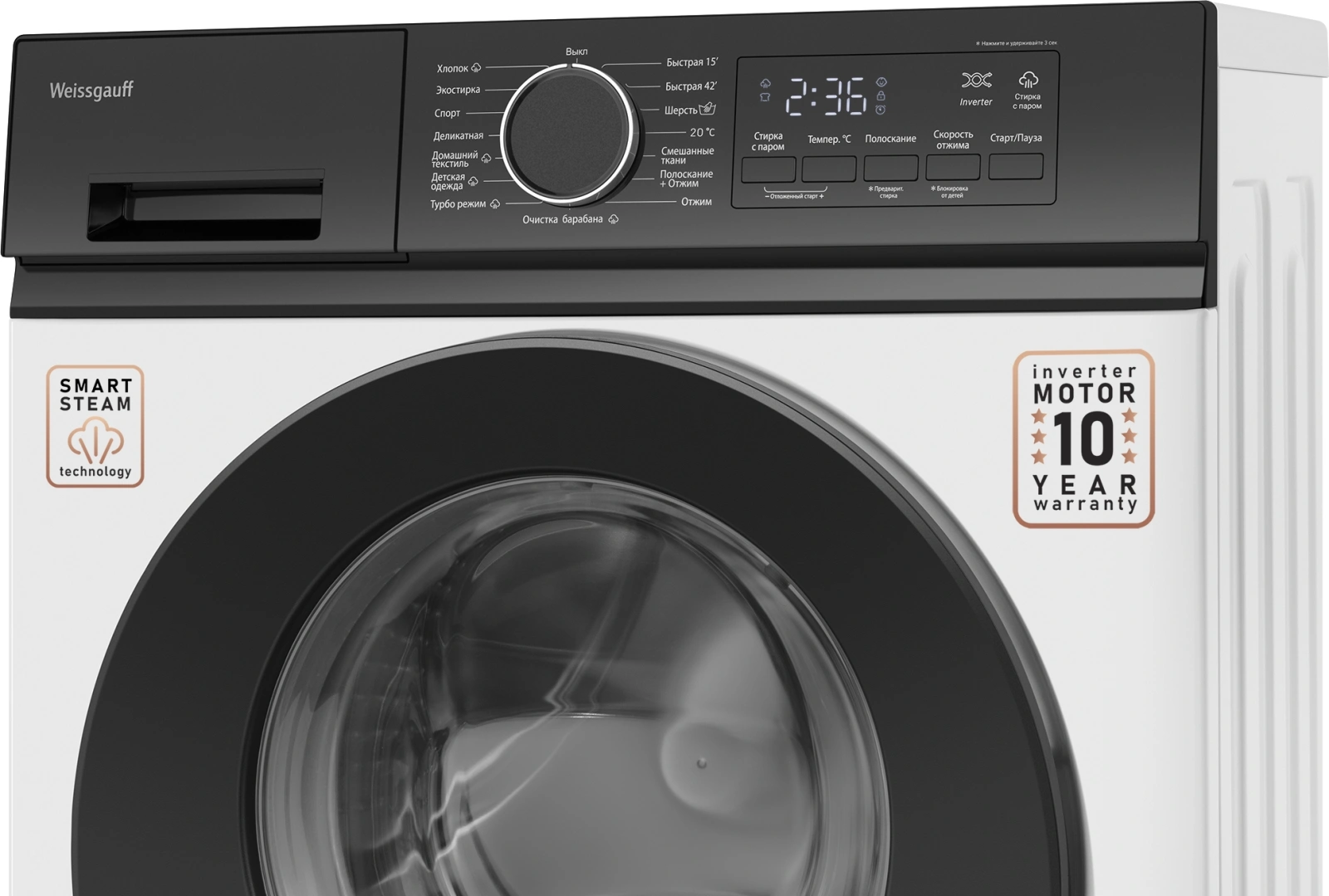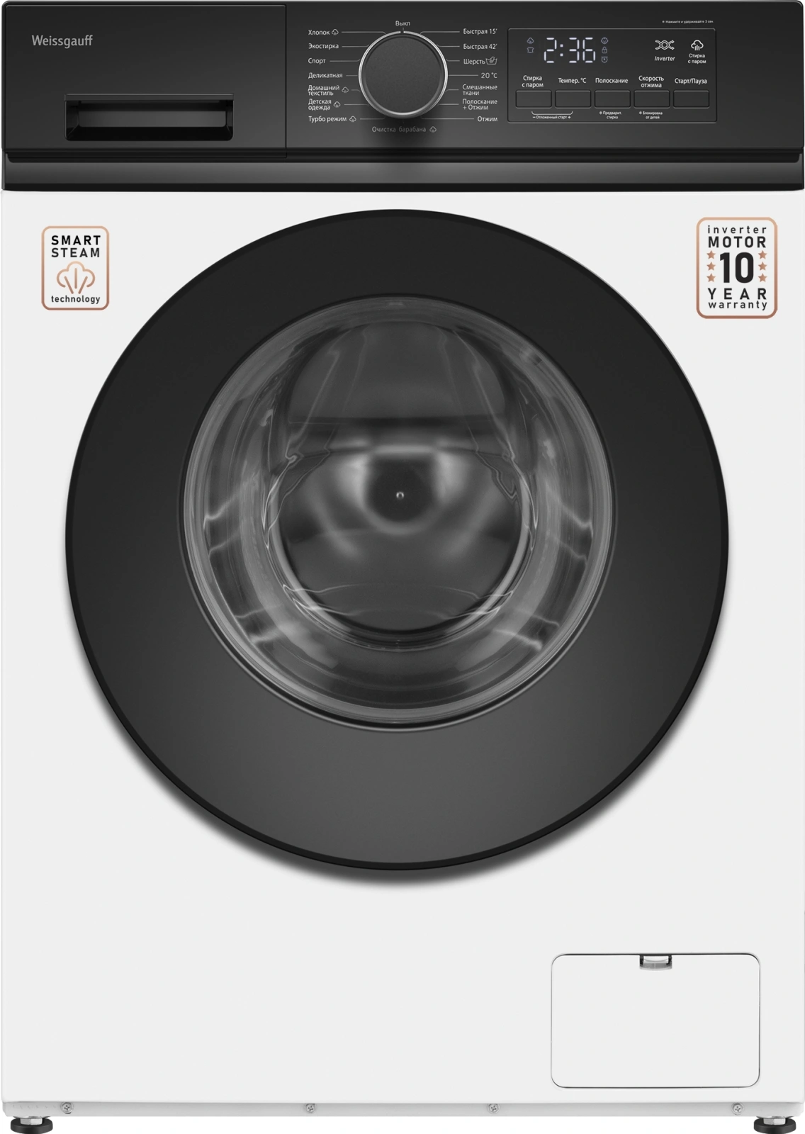 Стиральная машина Weissgauff WM 41106 Inverter Steam(фронтальная узкая, класс стирки/отжима/э.потребления: A+++ , макс: 7кг, белый)