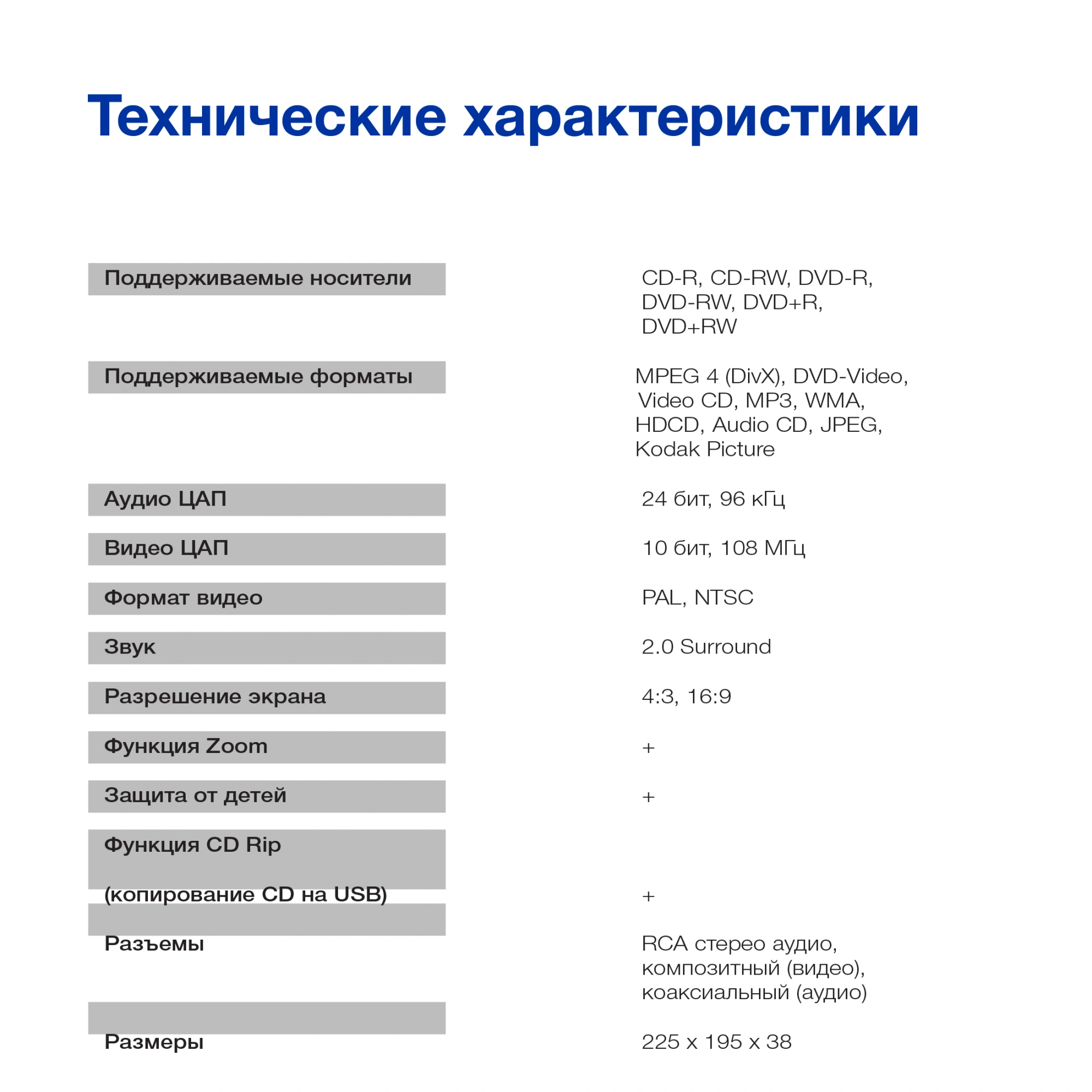 | Поддерживаемые форматы | MP3, MPEG4, DivX, WMA |