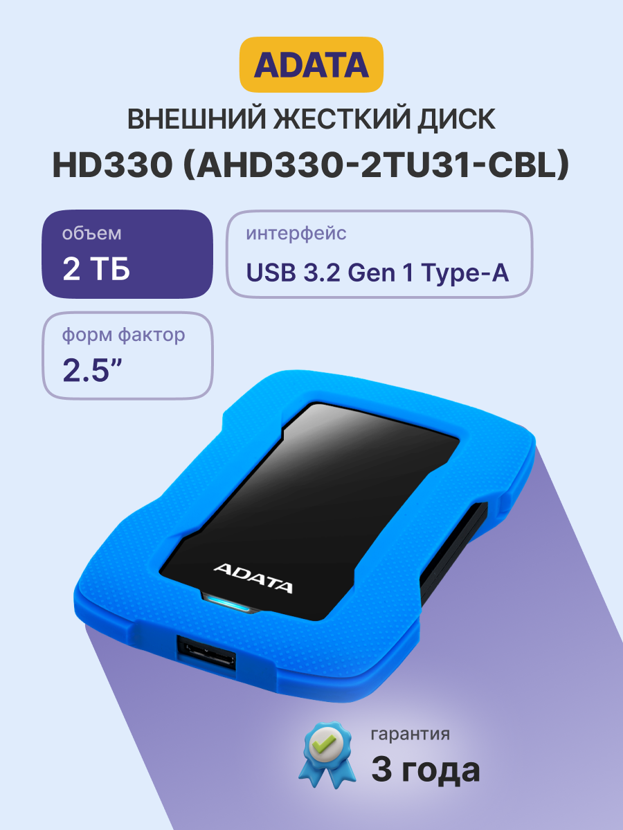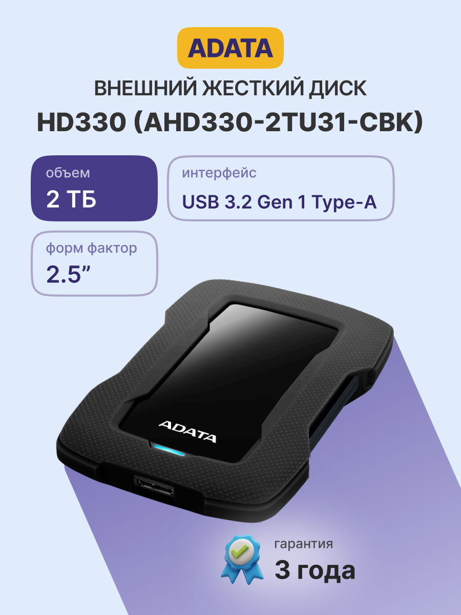 Внешний жесткий диск HD330 компании ADATA обеспечивает сохранность ваших данных за счет использования силиконового чехла снаружи, а также запатентованных вибродатчиков ADATA и программного обеспечения HDDtoGO с AES-256-битным шифрованием внутри. Однако, несмотря на свою прочность, HD330 отличается тонким форм-фактором в 16,2 мм, поэтому на него приятно смотреть и удобно переносить.