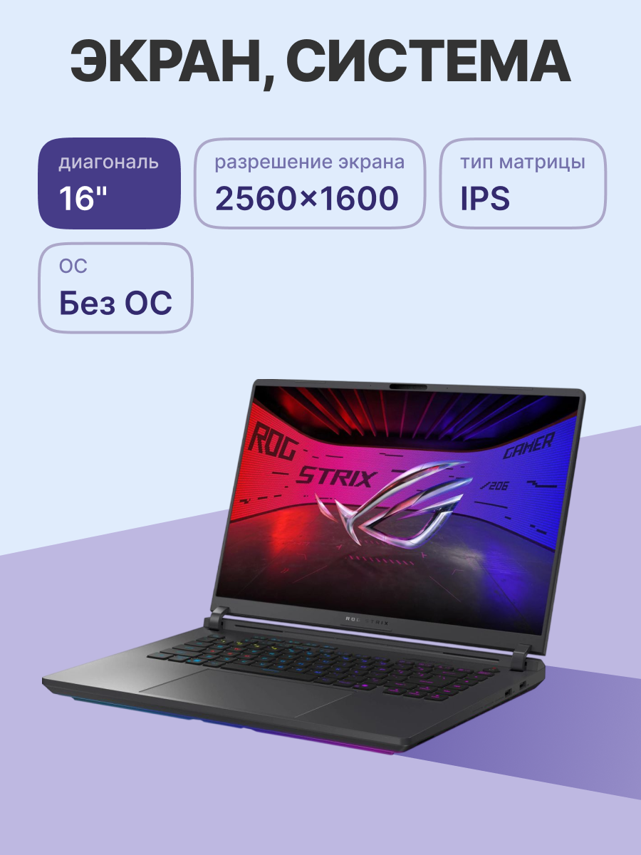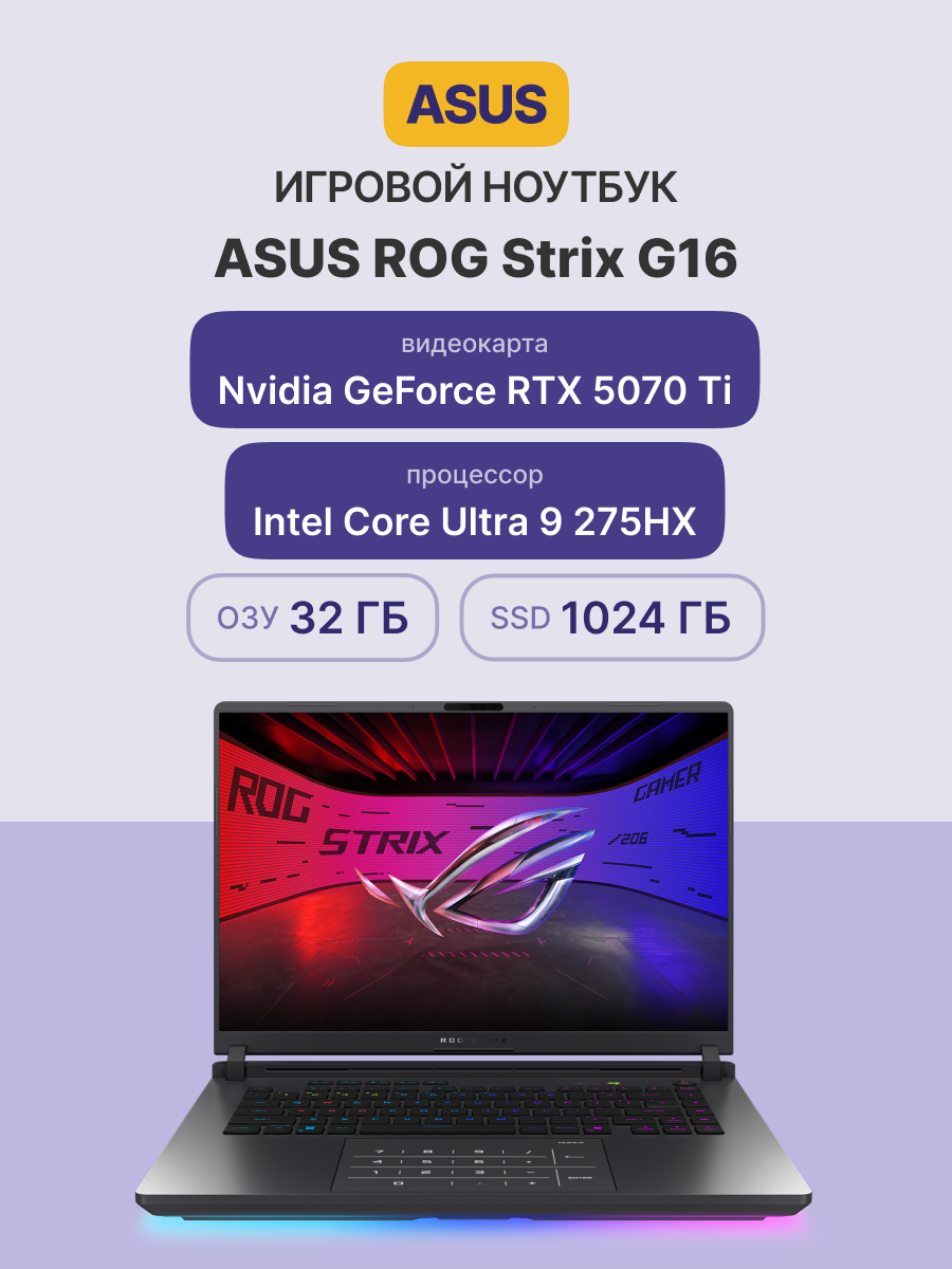 Ноутбук ASUS ROG Strix G16 G615LR-S5222 (Intel Core Ultra 9 275HX 2.7 ГГц/32 ГБ DDR5 5600 МГц/16" IPS 2560x1600 240Гц/1024ГБ SSD/Intel Arc Xe-LPG 64EU/DOS/Linux/без ОС)