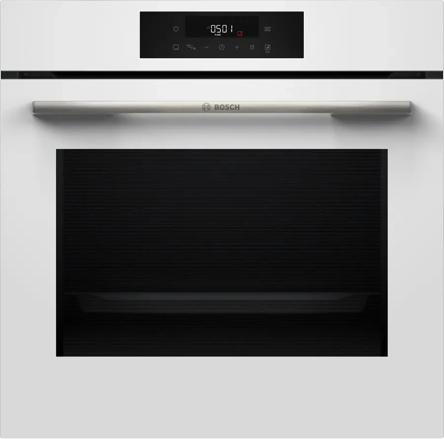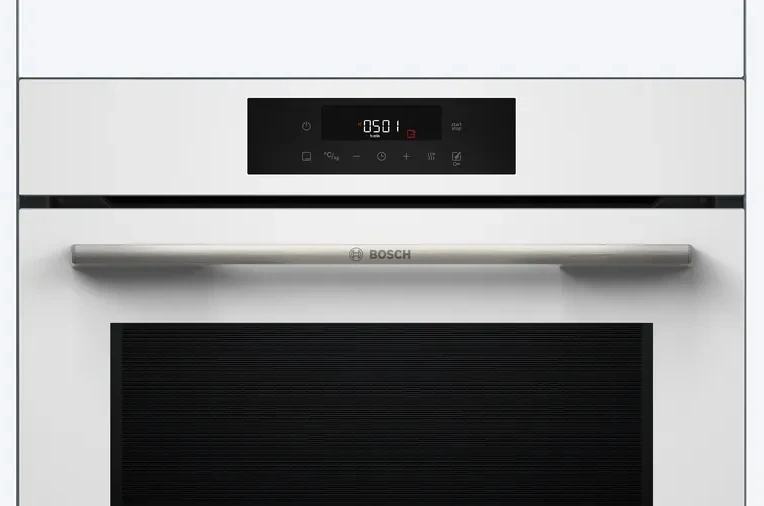 Электронное управление духового шкафа Serie 6 HJG852YW0T с сенсорной панелью и цифровым дисплеем позволяет точно настраивать режимы работы, включая таймер, отложенный старт и автоматические программы.