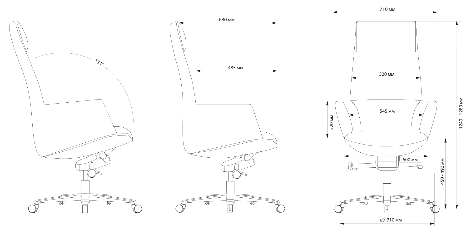 | Угол наклона спинки | 121 ° |