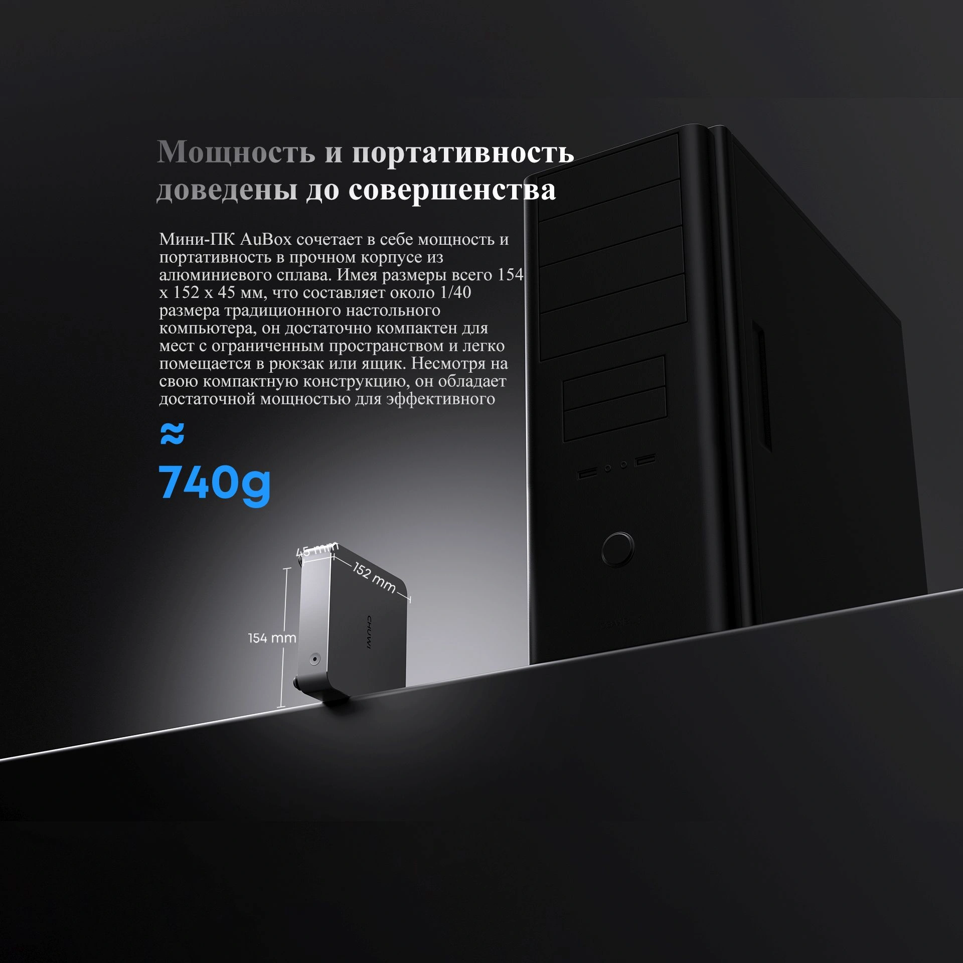 | Особенности | Мини-ПК Chuwi AuBox (32 ГБ, 1 ТБ) — это высокопроизводительное и компактное решение для работы, мультимедиа и лёгких игровых задач. Элегантный корпус из алюминия и пластика сочетает стиль, прочность и современный дизайн, идеально вписываясь в домашний или офисный интерьер. Мак |