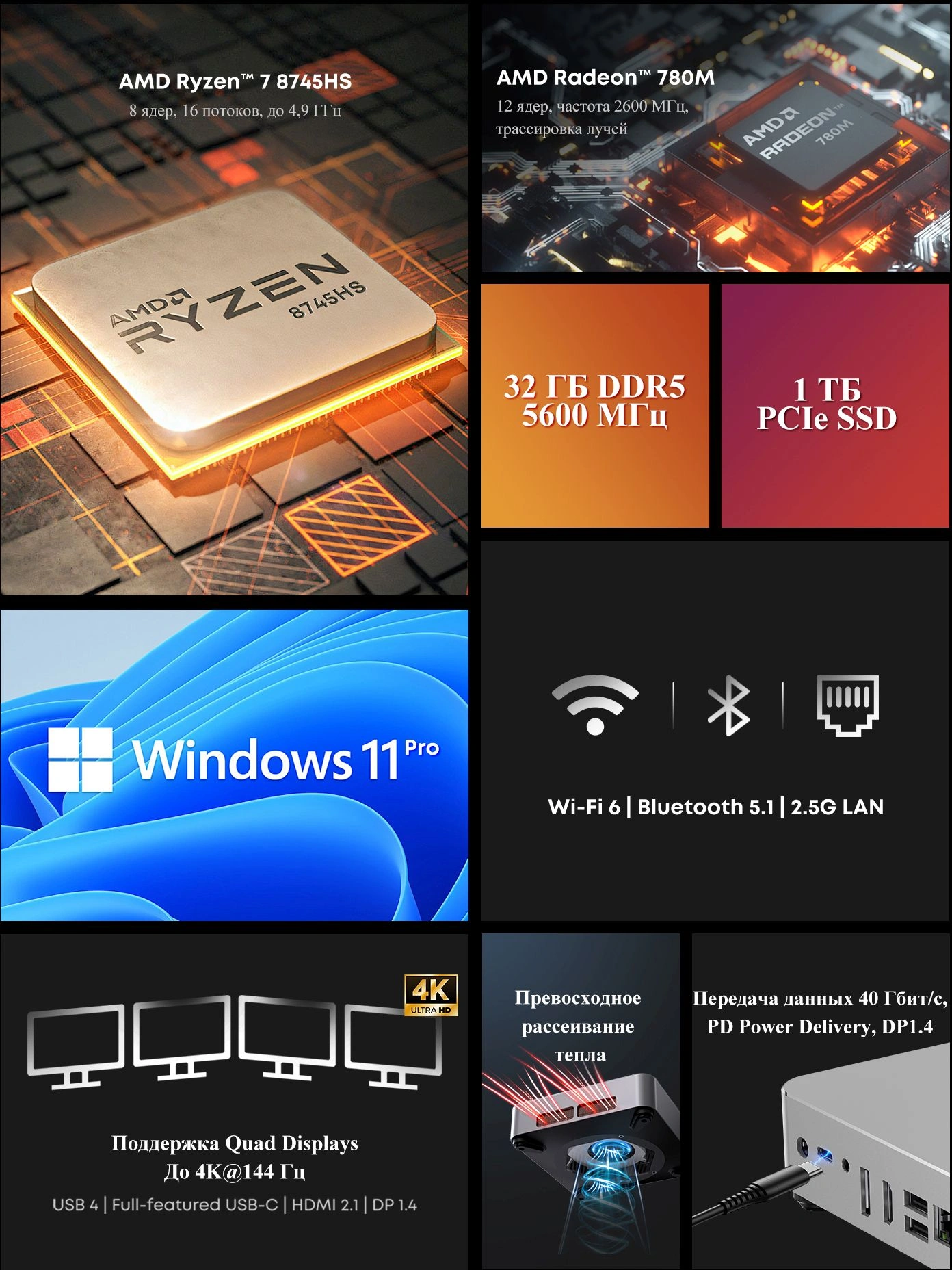 | Процессор | AMD Ryzen 7 8745HS 3.8ГГц |