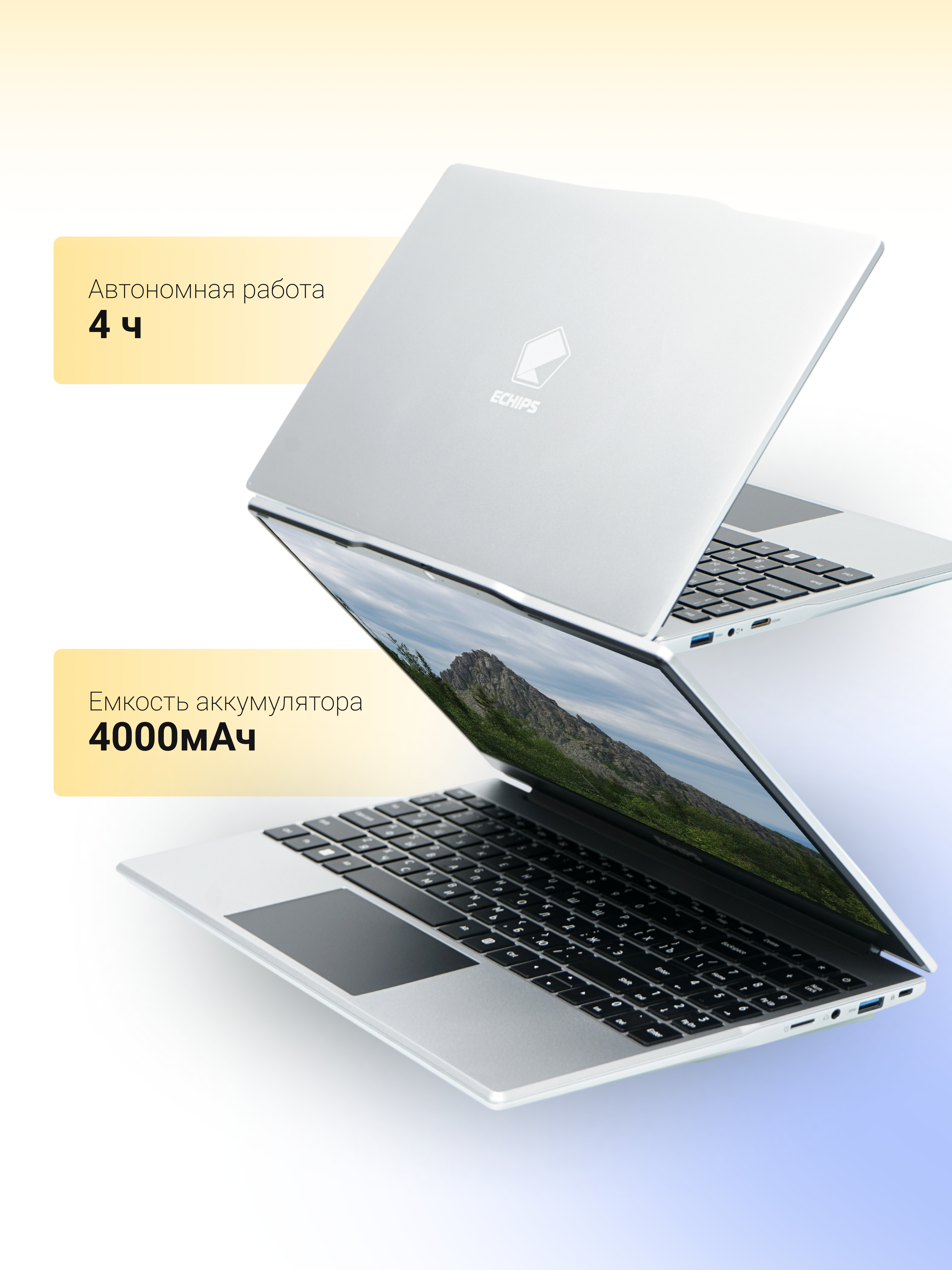ECHIPS NR142G Taganay поддерживает беспроводные технологии Wi-Fi и Bluetooth, что обеспечивает удобное подключение к интернету и другим устройствам. Аккумулятор емкостью 30.8 Вт·ч обеспечивает достаточную автономность для работы в течение дня без необходимости частой подзарядки.