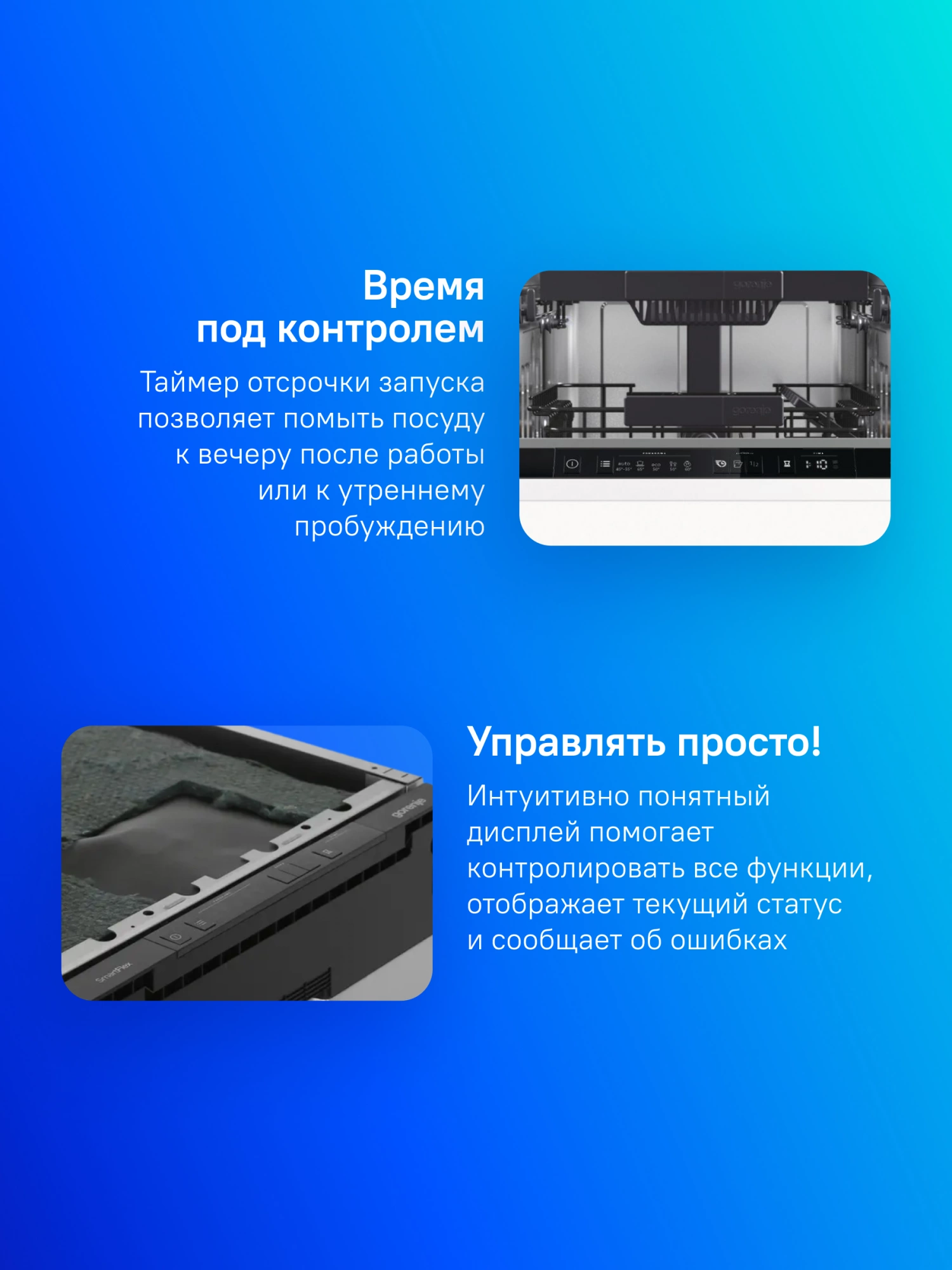 Посудомоечные машины Gorenje оборудованы самой надежной защитой от протечек — AquaStop. Если вы включили посудомоечную машину Gorenje и вышли из дома по делам, будьте спокойны! Встроенная система AquaStop обеспечит абсолютную безопасность. В случае возникновения протечки эта система перекроет поступление воды, а насос откачает оставшуюся воду из бака машины.