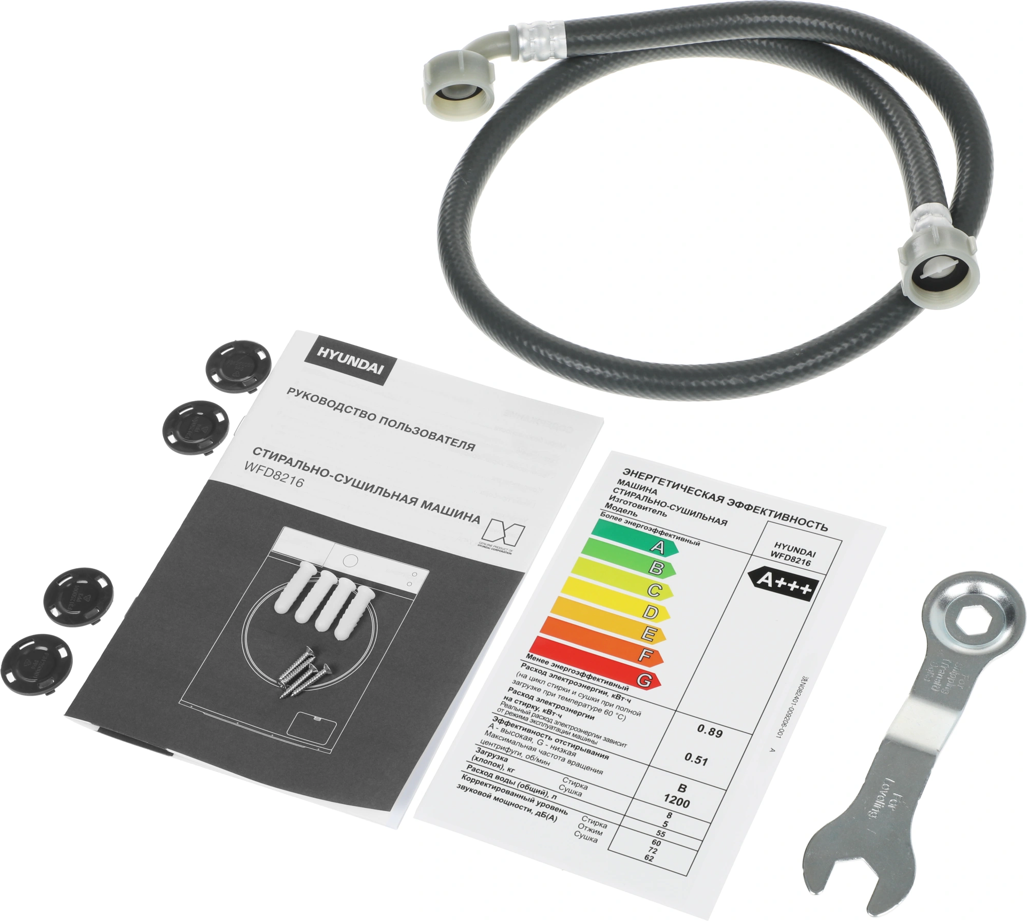 Стиральная машина Hyundai WFD8216(59.5x85x60см, фронтальная, макс:8кг, с сушкой, 1200об/мин, белый)