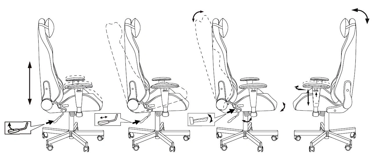 Особенности/доп.информация | 2D- подлокотники, колеса для паркета / ламината, реклайнер, две подушки |
