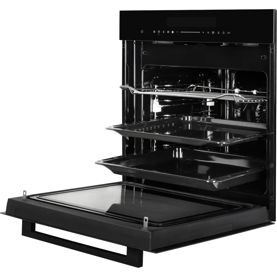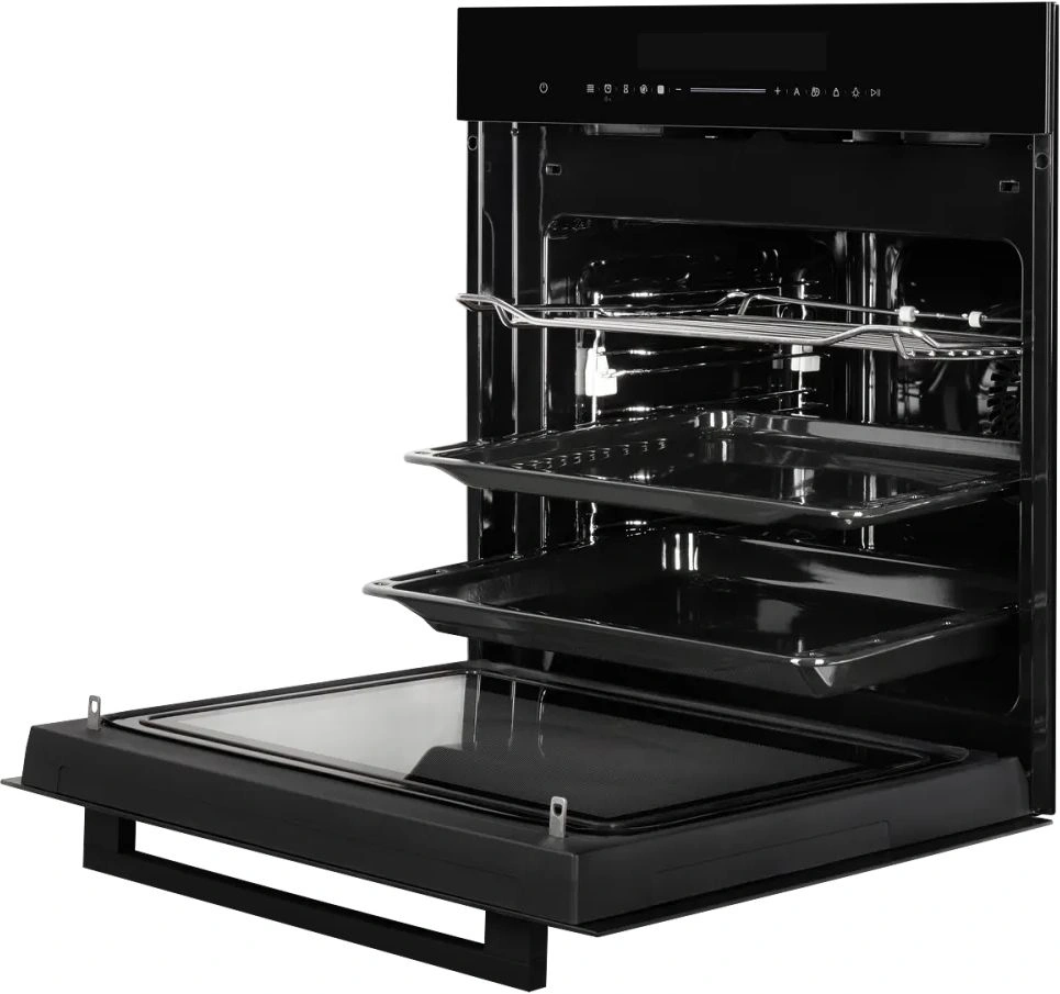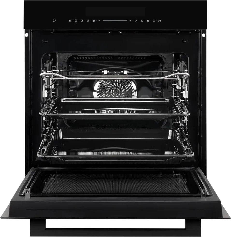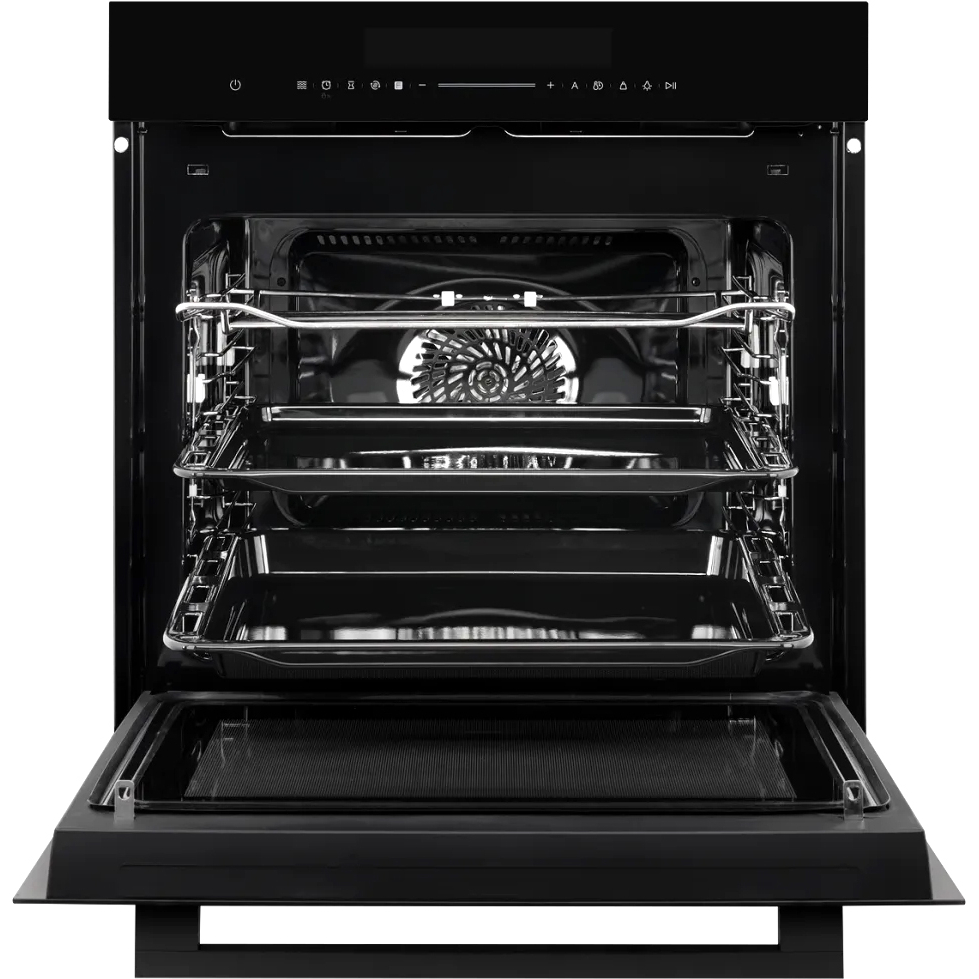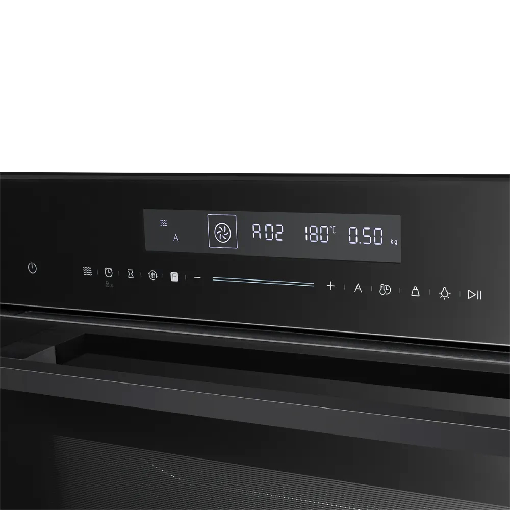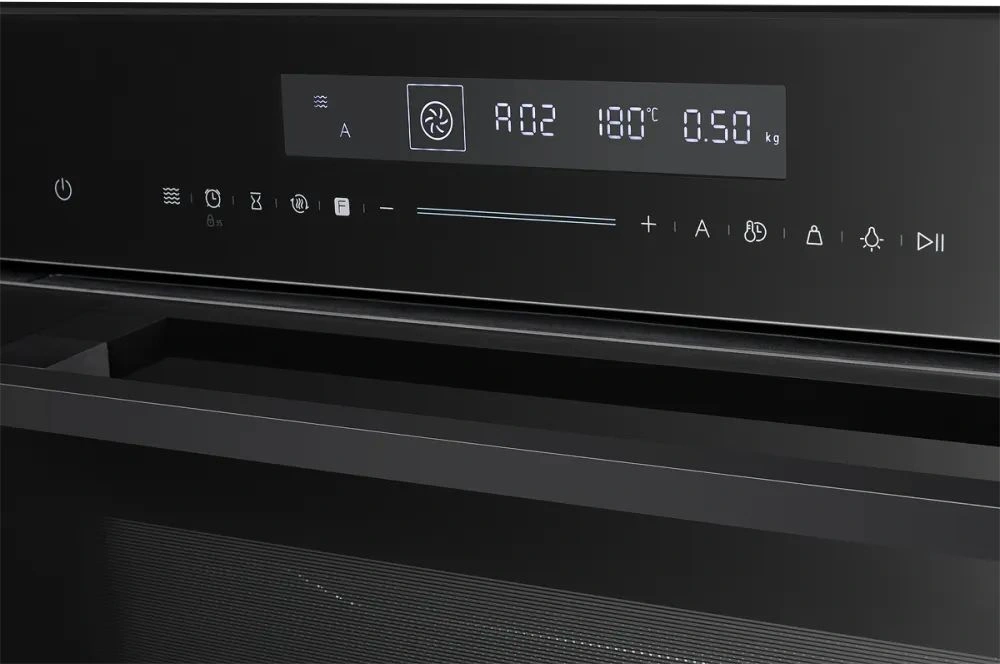 Сенсорное управление с понятными пиктограммами делает использование интуитивно понятным, встроенный дисплей отображает все возможности и активные параметры работы. Предустановлено десять автоматических программ. Функция быстрого нагрева сокращает время готовки, а таймер с функцией автоматического отключения помогает контролировать процесс. Максимальная температура нагрева — 250°C. Блокировка предотвращает случайное включение, делая технику безопасной для семей с маленькими детьми.