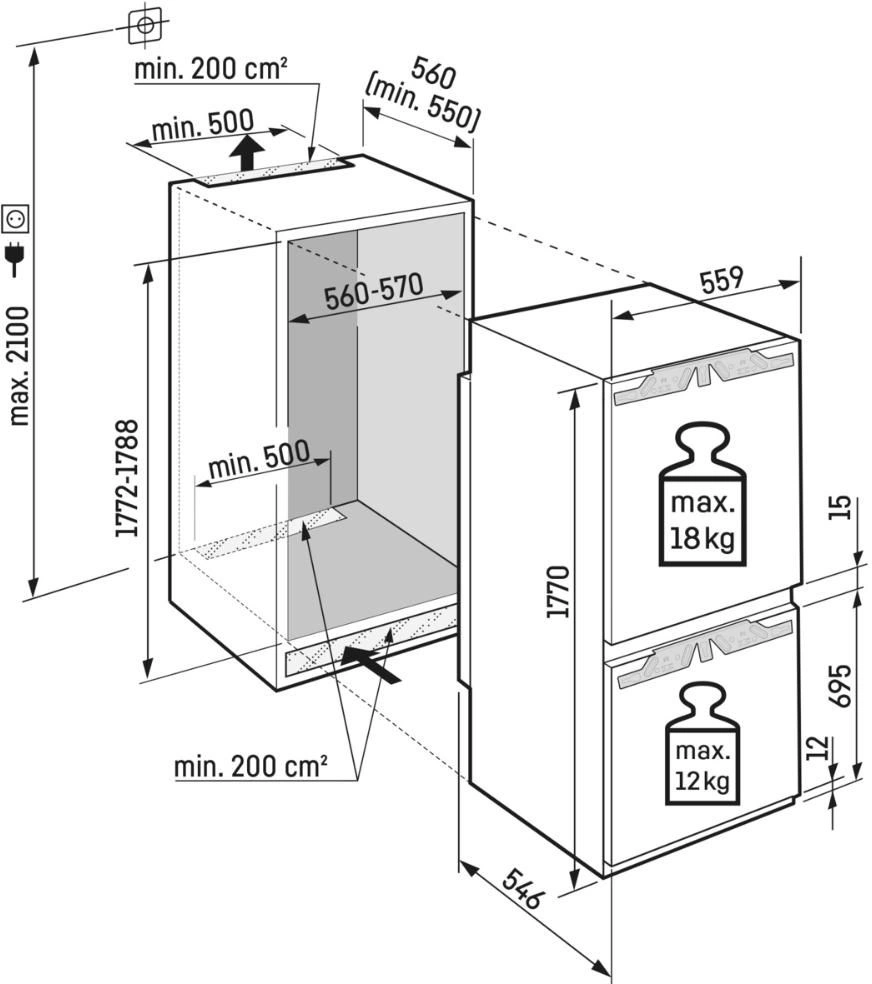 Холодильник LIEBHERR ICNe 5103-22 001 предназначен для ниши высотой 178 см. Его компактные размеры и продуманная конструкция позволяют легко интегрировать его в кухонную мебель, обеспечивая гармоничное сочетание с другими элементами интерьера. Это делает его отличным выбором для кухонь любого размера.