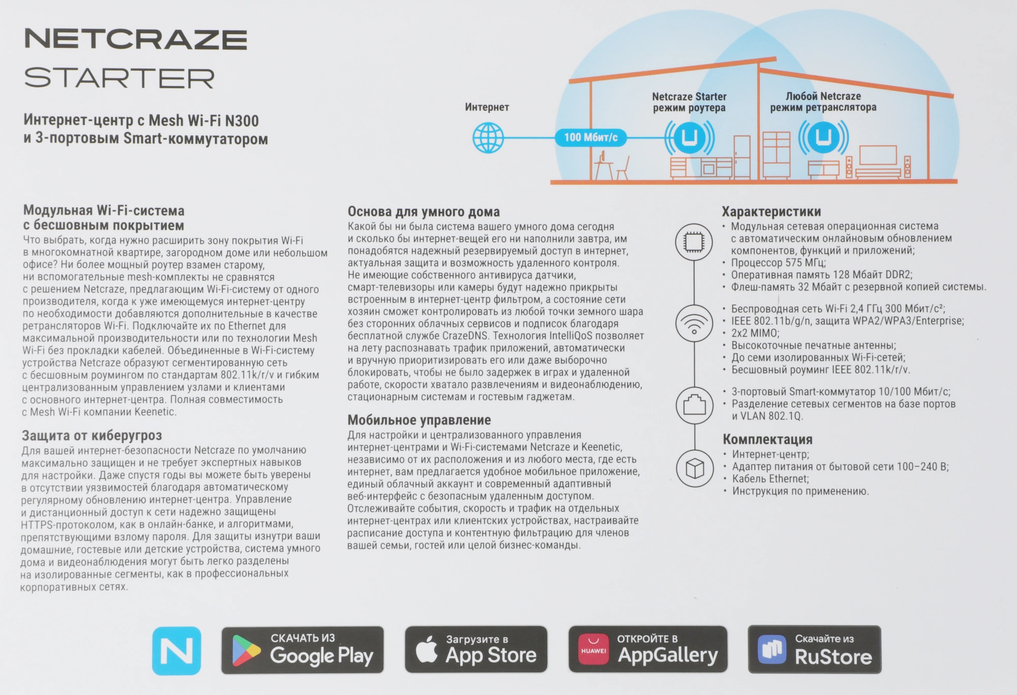 Маршрутизатор Netcraze Starter NC-1121 — идеальный выбор для тех, кто хочет простой и надёжный интернет дома или в небольшом офисе. Компактное устройство с 128 Мб оперативной памяти DDR2 обрабатывает данные быстро и эффективно, обеспечивая стабильную работу даже при нескольких подключениях одновременно.