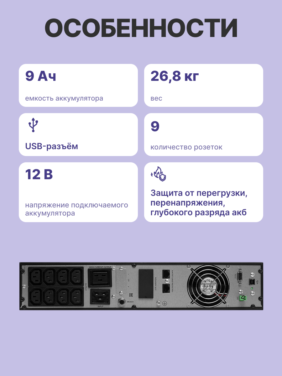 | Количество выходных разъемов питания (UPS) | 9 |