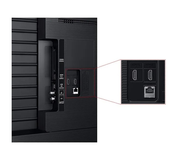 Телевизор поддерживает DVB-T2/C/S2, CI+ 1.4, оснащен 3 HDMI и 1 USB портом для подключения приставок, медиаплееров и других внешних устройств.